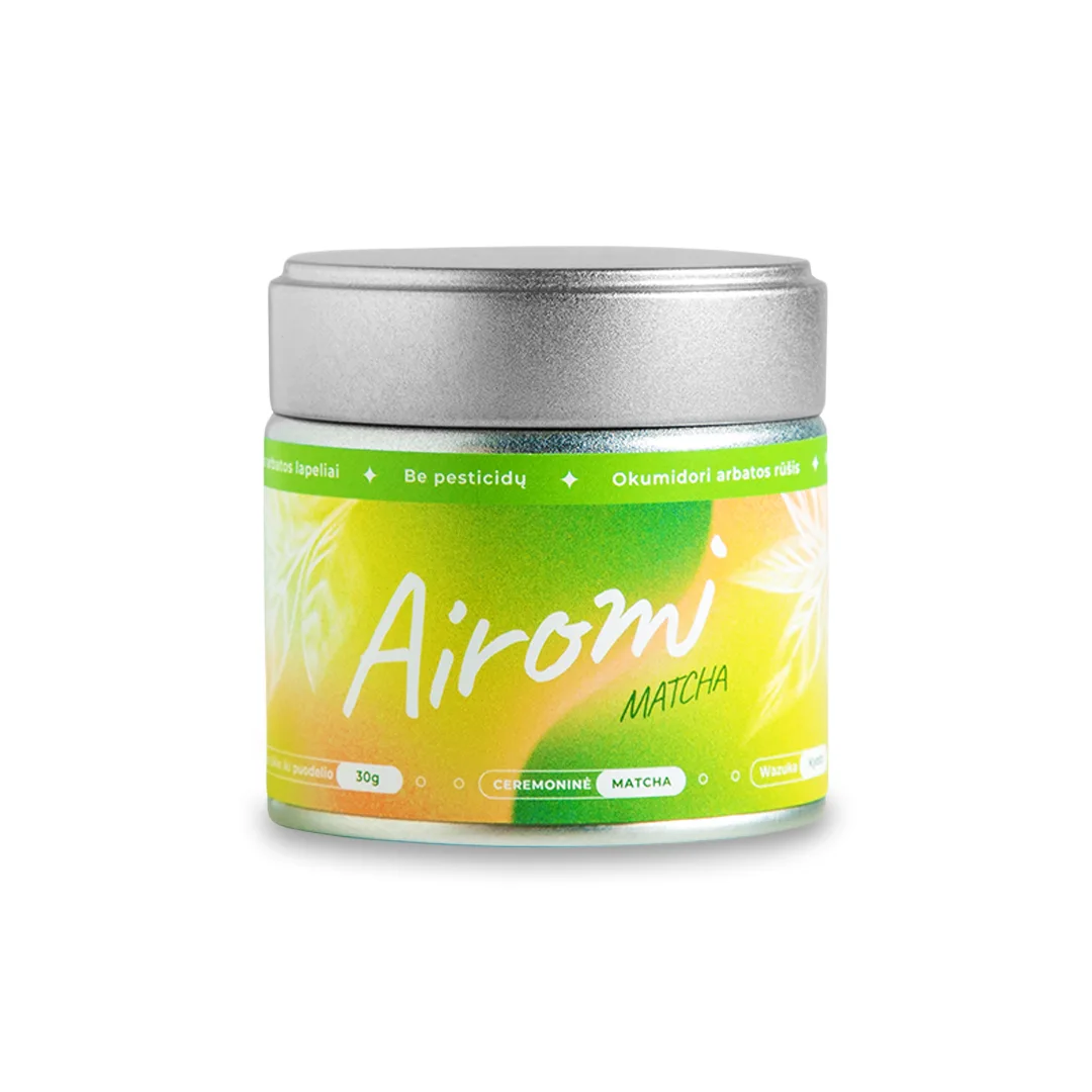 Sutalpinta mažame, ryškiai žaliame miltelių indelyje. Įsivaizduok, kaip senoviniuose Japonijos soduose ankstyvą pavasario rytą rankomis skinami švelniausi arbatos lapeliai. Kruopščiai atrinkti, jie lėtai sumalami tradiciniais akmeniniais malūnais, taip išsaugant visą savo trapų aromatą ir skonio gilumą.